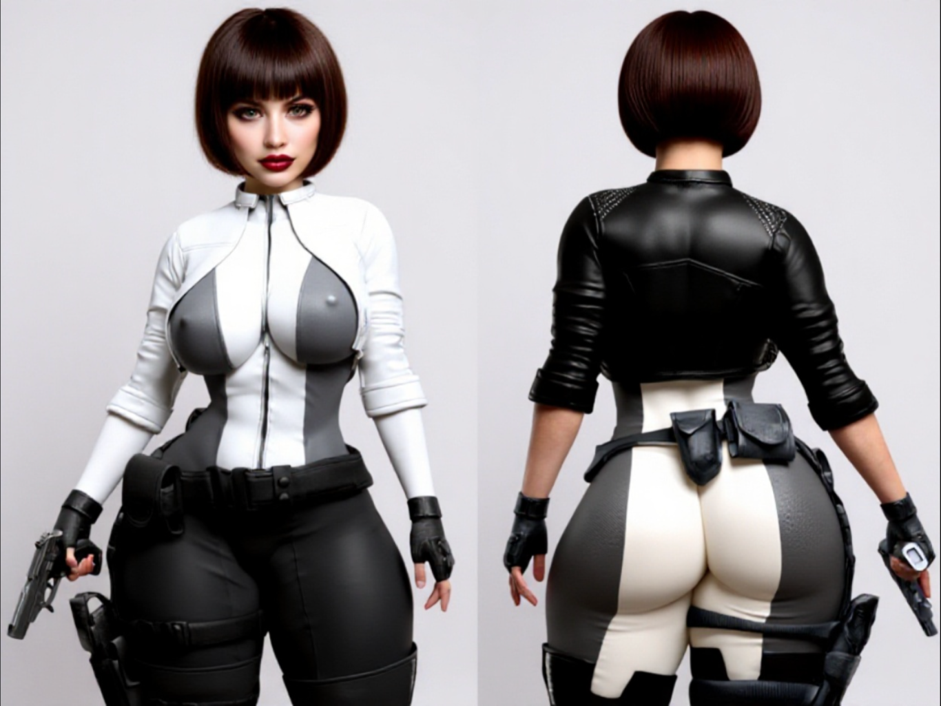 As in Any Outfit She's Wearing, This Latex Outfit is Available in All Sizes, All Colors & Two Fabrics, Latex or Leather